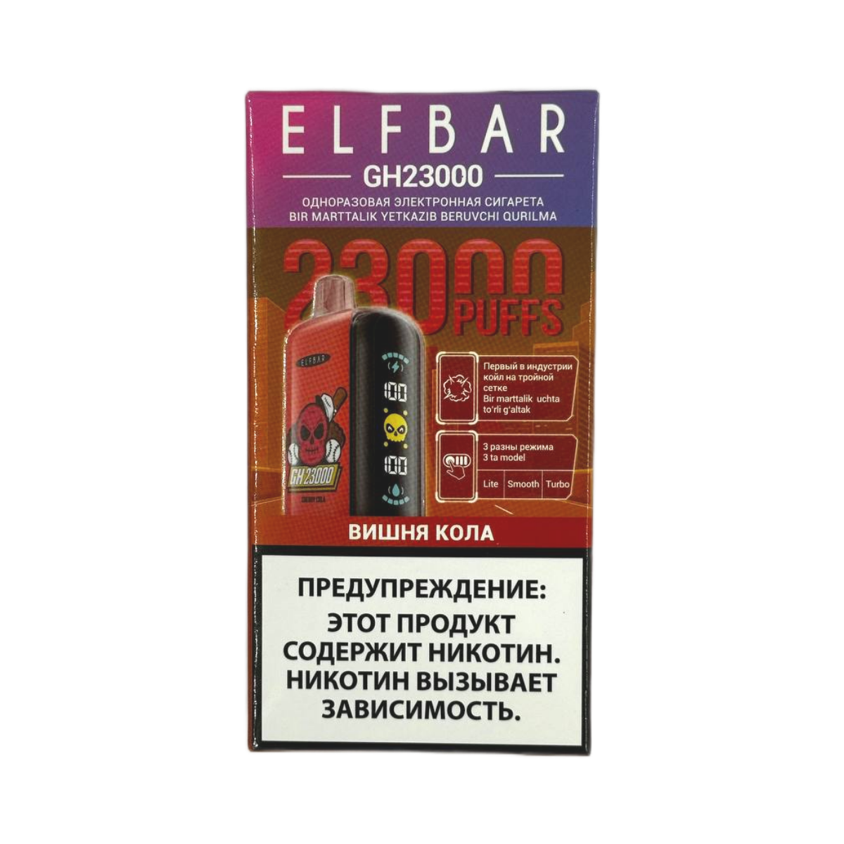 Откройте для себя новые грани парения с ELFBAR GH 23000 Вишня кола! Получите непревзойденное удовольствие от качественного устройства.