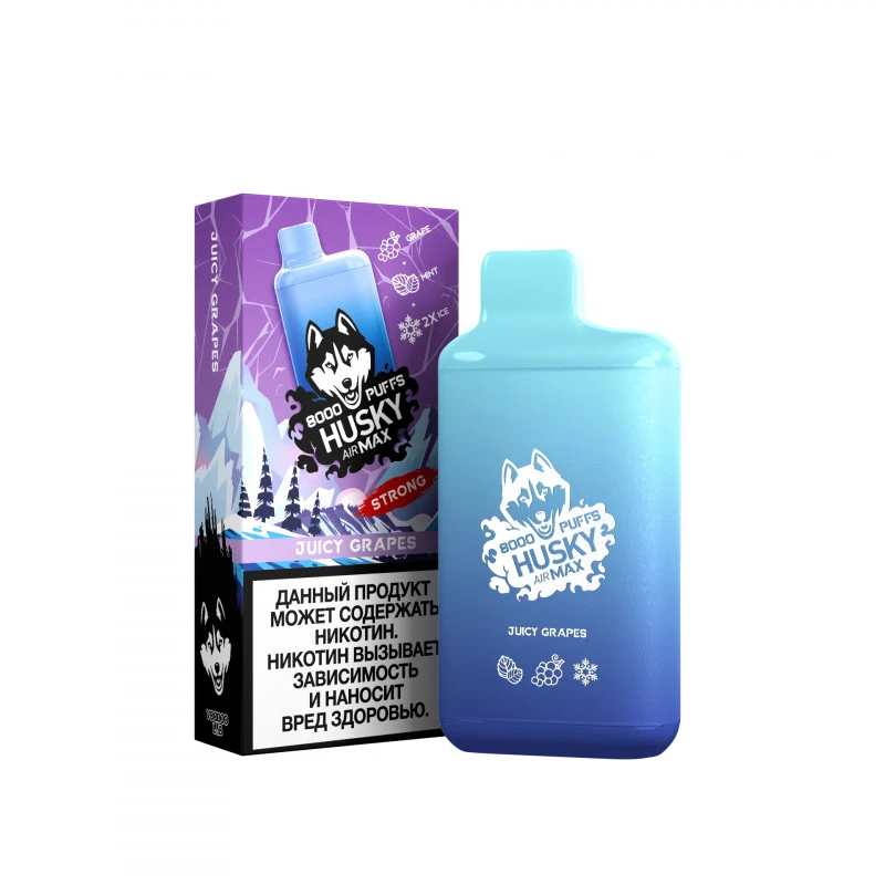 Электронная сигарета HUSKY Air Max 8000 “Juicy Grapes” – инновационное устройство для ценителей насыщенных вкусовых оттенков. Магазин Snusbar предлагает уникальную модель с освежающим профилем винограда, мяты и льда.