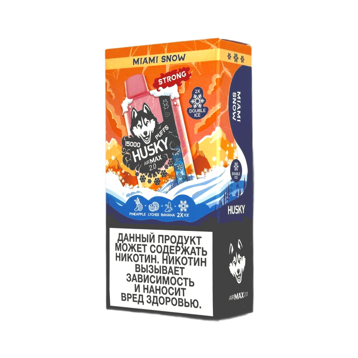 Современный дизайн, высокое качество и уникальный вкус делают HUSKY AIRMAX 2.0 15000 Ледяной микс ананаса, личи и банана отличным выбором для тех, кто ценит комфорт и стиль.