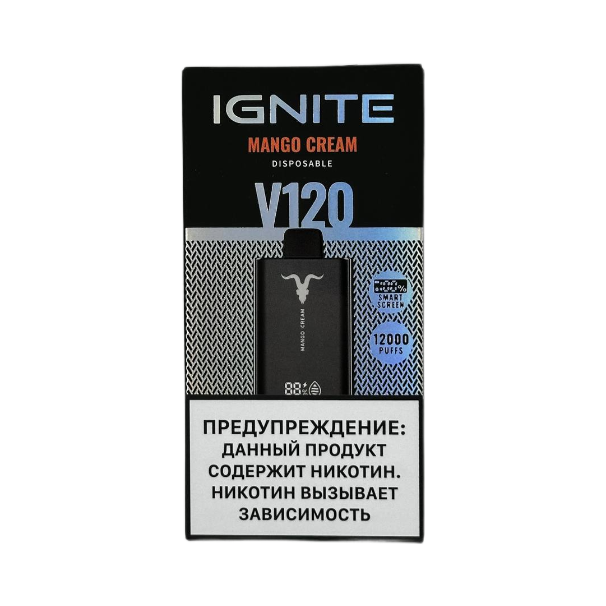 Электронная сигарета IGNITE V 120 12000 “Манговый крем” – идеальный выбор для тех, кто ценит изысканные вкусовые сочетания и качественные устройства. Приобретайте в Snusbar – надежном магазине электронных сигарет с безупречной репутацией!