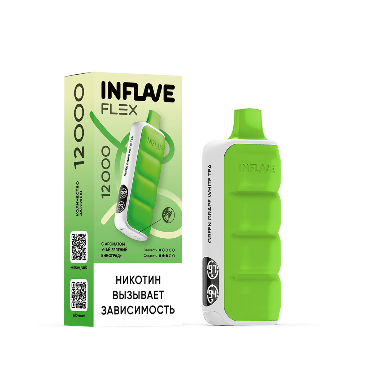 Электронная сигарета INFLAVE FLEX 12000 “Зеленый чай виноград” – идеальный выбор для тех, кто ищет необычные и изысканные вкусовые решения. Приобретайте в Snusbar – надежном магазине электронных сигарет!