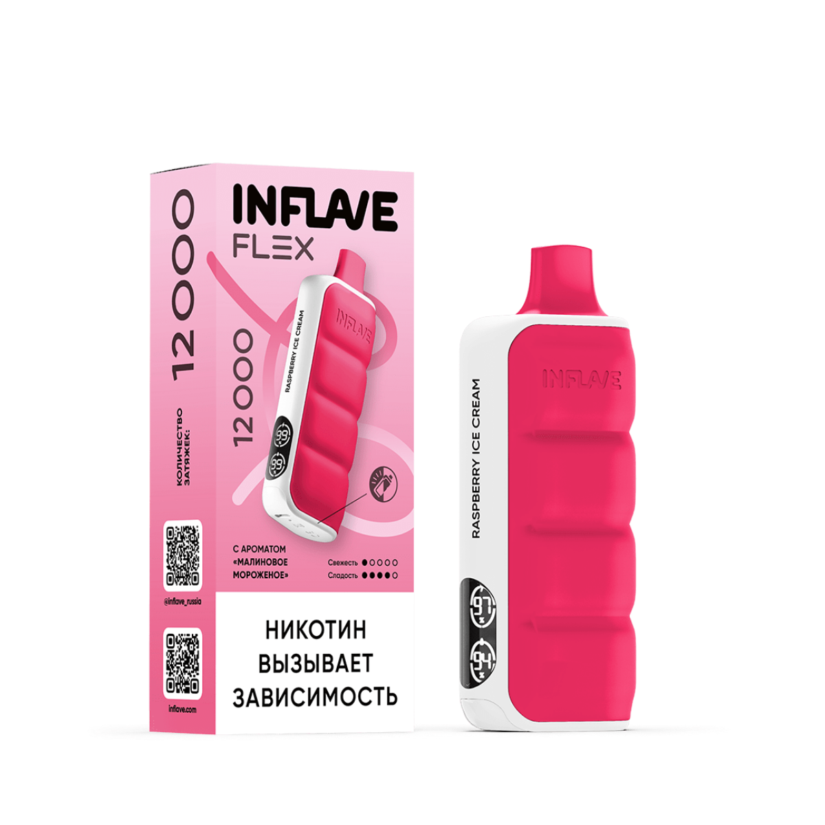 Электронная сигарета INFLAVE FLEX 12000 “Малиновое мороженое” – отличный выбор для тех, кто ищет яркие вкусовые впечатления. Приобретайте в Snusbar – надежном магазине электронных сигарет!