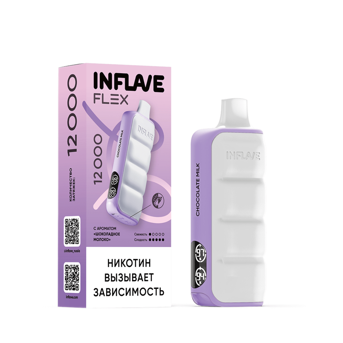 Электронная сигарета INFLAVE FLEX 12000 “Шоколадное молоко” – отличный выбор для тех, кто ценит нежные десертные вкусы. Приобретайте в Snusbar – надежном магазине электронных сигарет!