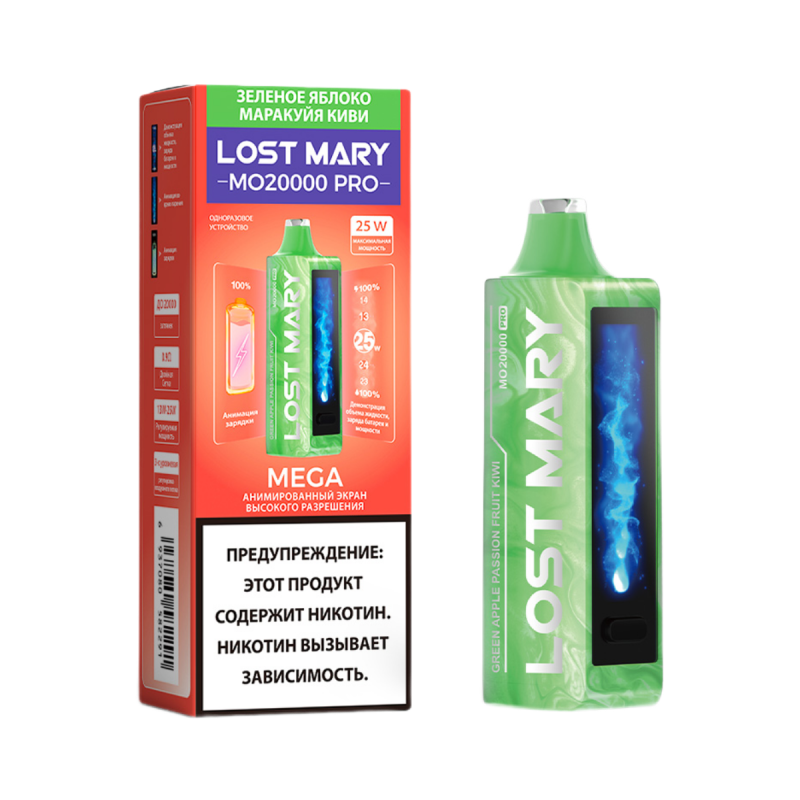 Электронная сигарета Lost Mary MO 20000 PRO с уникальными вкусами Зеленое Яблоко, Маракуйя и Киви – это современное устройство для ценителей качественного вейпинга. Магазин Snusbar предлагает инновационный гаджет, который полностью оправдает ваши ожидания.