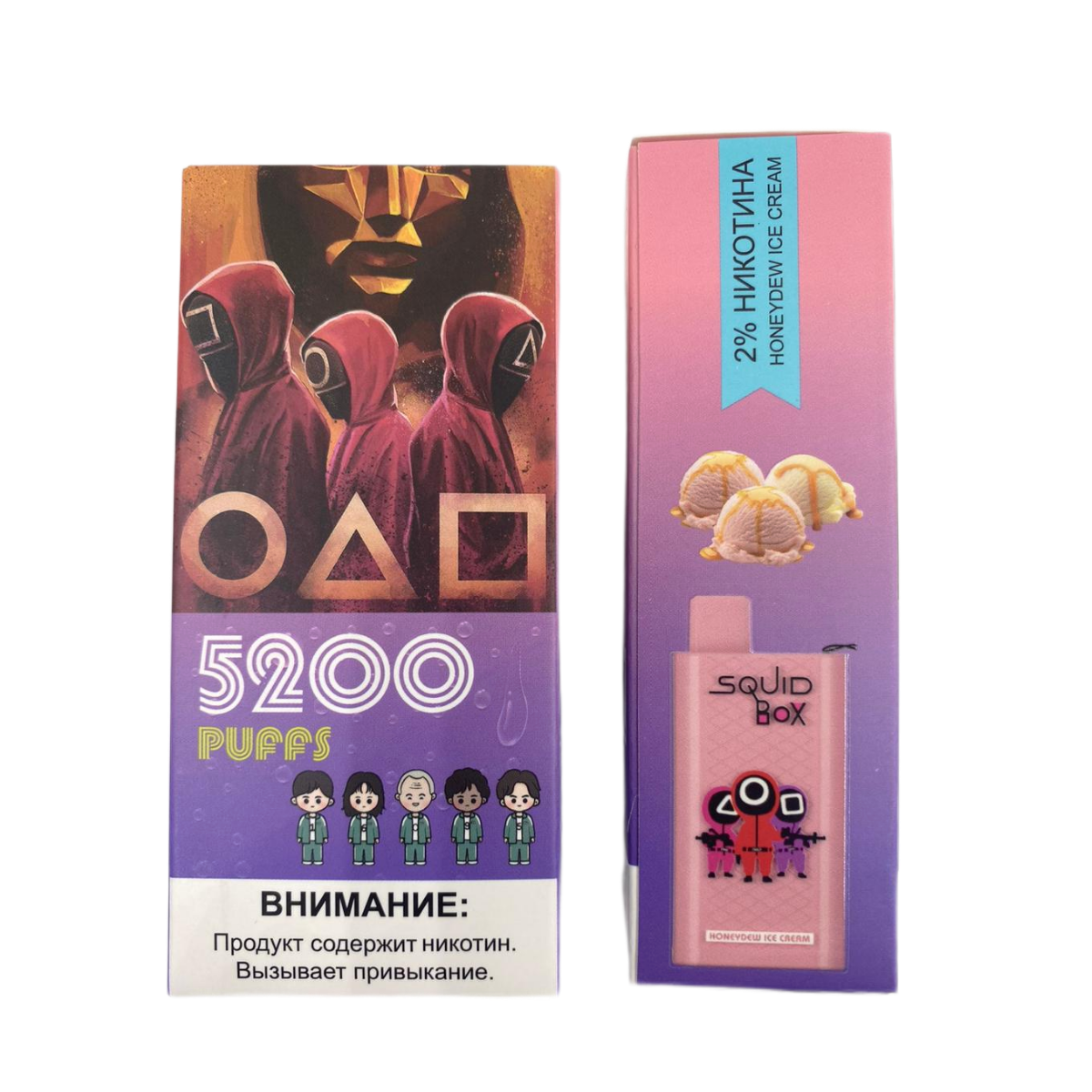 Компактный дизайн и небольшие размеры делают Squid Box максимально удобным для переноски. Он отлично лежит в руке и готов к использованию в любое время. Предустановленный аккумулятор обеспечивает стабильную работу без дополнительной зарядки, что повышает комфорт использования. Вкус мороженого с дыней придаёт свежесть каждому вдоху, создавая приятные ощущения.