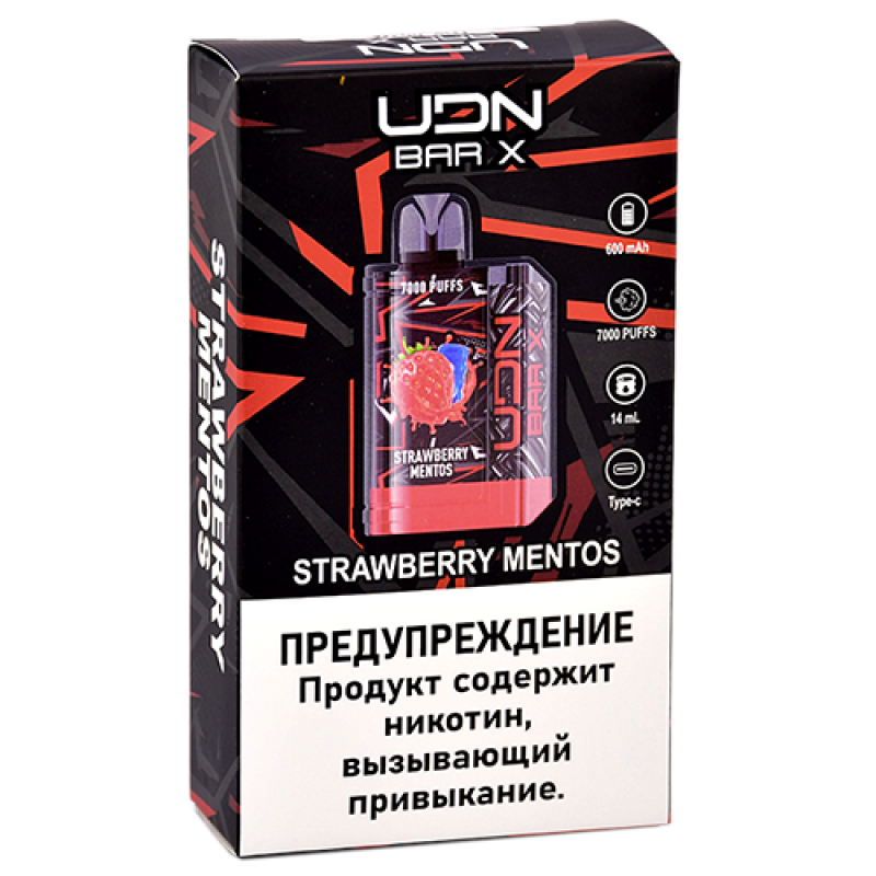 Купить электронную сигарету UDN BAR X III 7000 Клубничный Mentos в магазине snusbar – это возможность насладиться насыщенным вкусом сладкой клубники с освежающими нотками мяты. Это одноразовое устройство рассчитано на 7000 затяжек, что обеспечивает длительное и комфортное использование без необходимости заправки или подзарядки. Вкус Клубничный Mentos сочетает в себе натуральные фруктовые оттенки с легкой ментоловой свежестью, что делает процесс парения приятным и освежающим в любое время дня.