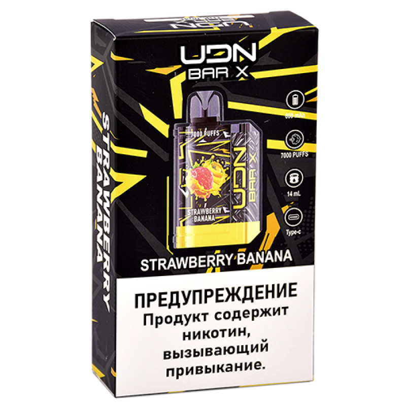 Вкус Клубника, Банан представляет собой нежное и приятное сочетание сладких ягодных и фруктовых нот, создавая уникальный букет ароматов. Такое сочетание подойдет как новичкам, так и опытным пользователям, желающим разнообразить свои впечатления от электронного парения. Благодаря продвинутой технологии производства, UDN BAR X III 7000 обеспечивает стабильную подачу пара и яркий насыщенный вкус на протяжении всего срока службы.